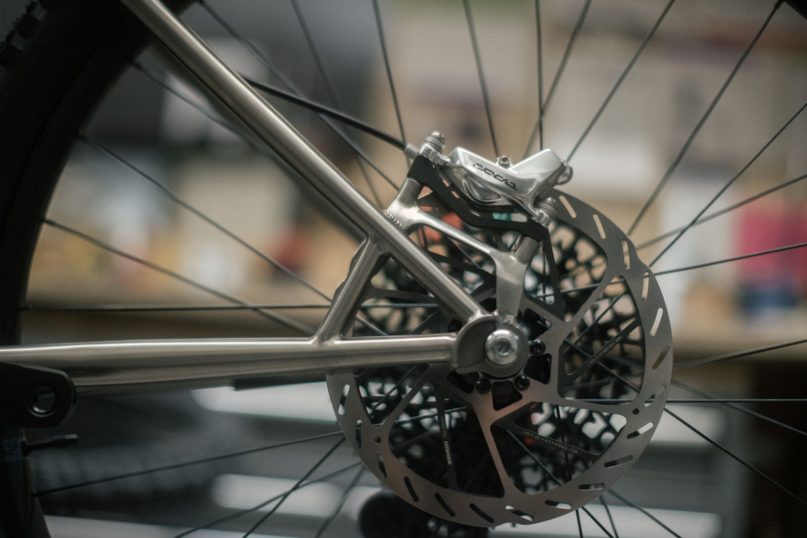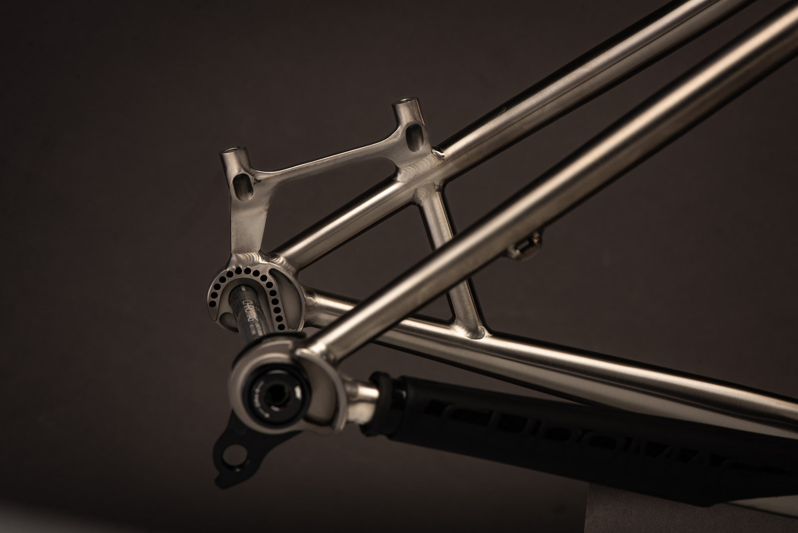 Titanium is most known for it's corrosion resistance and strength to density ratio, the highest of any metallic element. It's half the weight of steel for the same tensile strength and twice as strong as aluminum alloy. In practical terms this means we can use less material (ie. thinner tubing) to achieve the same strength. Combining this with it's ductility means we can create incredibly light frames, but still maintain incredible compliance and ride feel.