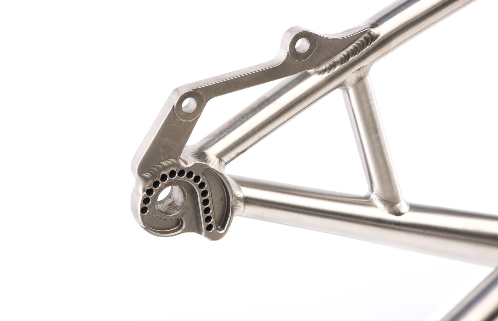 Titanium is most known for it's corrosion resistance and strength to density ratio, the highest of any metallic element. It's half the weight of steel for the same tensile strength and twice as strong as aluminum alloy. In practical terms this means we can use less material (ie. thinner tubing) to achieve the same strength. Combining this with it's ductility means we can create incredibly light frames, but still maintain incredible compliance and ride feel.